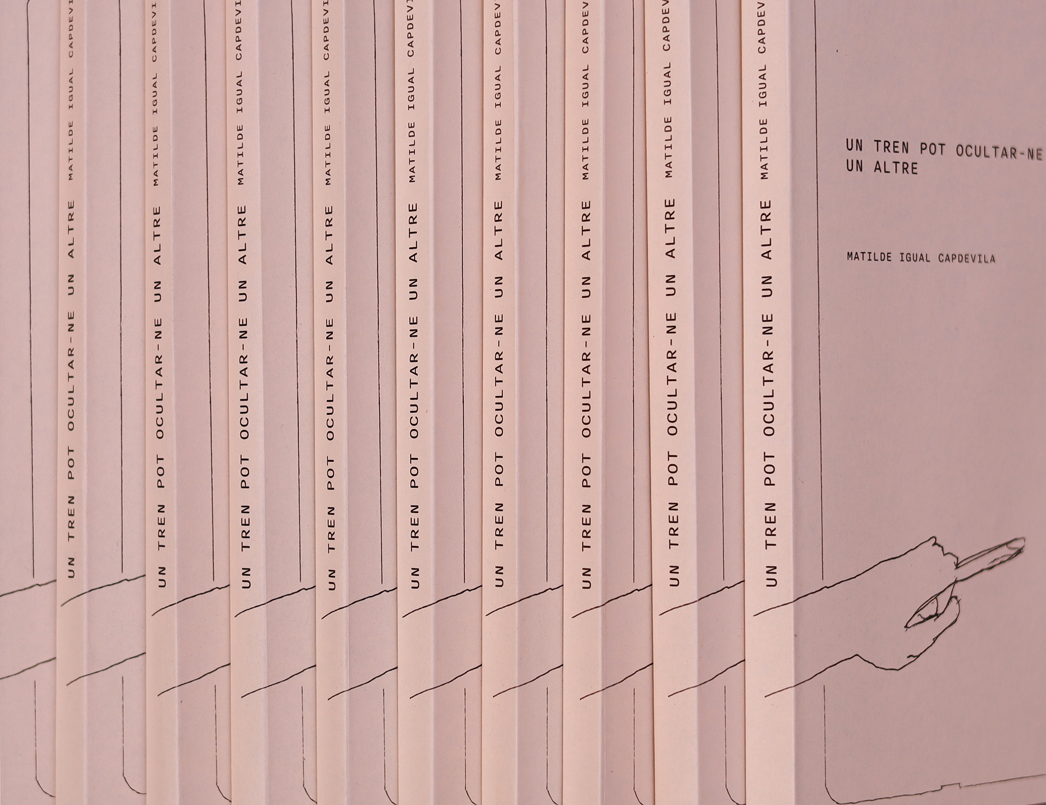 Per a tancar, parlem del teu nou projecte, Un tren pot ocultar-ne un altre.  És un llibret que acabe de publicar en Trinquet Edicions. Té dibuixos fets a rajaploma i textos curtets. Les regles eren senzilles: parar en cada estació, documentar i continuar el trajecte amb el tren següent. A vegades hi havia temps per a explorar, però d’altres no. Cada pàgina tracta d’una de les trenta-quatre parades que fa el tren regional que va de València a Barcelona, un trajecte que vaig completar en tres dies per a poder acomplir les regles establides. M’agrada anar amb tren i, com que tinc més temps que diners, agarre el Regional. M’intriga estar amb tanta gent en un vagó, la presència o absència de revisors, les cantines de les estacions, l’espai pròxim a les vies… Fa anys que mire els paisatges des del tren i em munte pel·lícules.