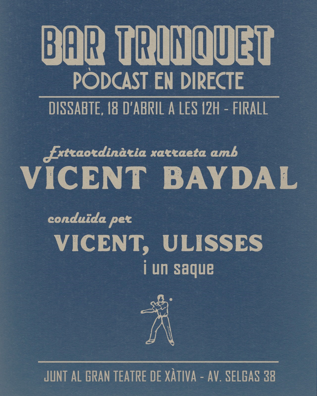 El pòdcast Bar Trinquet, de Castelló de la Ribera, continua creixent i ha anunciat una nova fita: la gravació d’un episodi en directe i amb públic dins de la celebració del Firall, la fira de l’all tendre de Xàtiva. La cita és este dissabte 18 d’abril a les 12.00 hores, als voltants del Gran Teatre de Xàtiva, en un esdeveniment que combinarà cultura, divulgació i entreteniment en un entorn festiu.