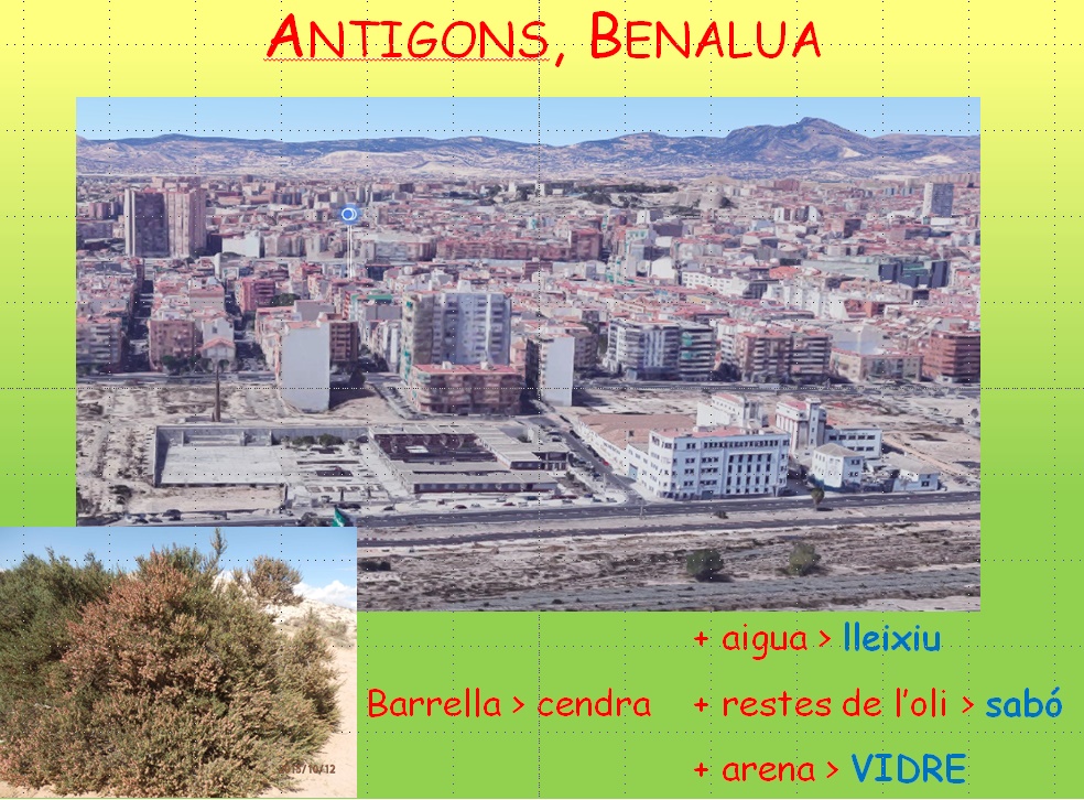 Finalment, pel que fa a les plantes riques en sodi i la manufactura del vidre a Busot, on un dels meus avantpassats, Llorenç Climent¸ era vidrier, el tema donaria per a molt; però això, clar, són unes altres històries.