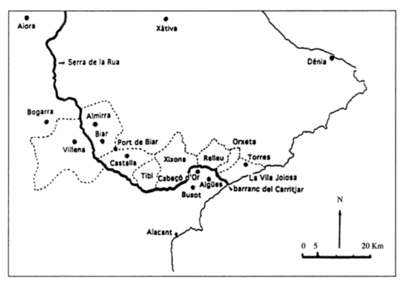 Però, sobretot, el vidre va tindre un gran predicament a la població de Busot, uns quilòmetres més al nord d’Alacant. Un poble que pel que fa a la història de la tecnologia ha tingut fama per haver sigut un dels pocs llocs de la península Ibèrica on durant segles es feia vidre de la millor qualitat. I això gràcies a l’abundància de plantes resistents a la sal, halòfites, principalment soses i barrelles; i a una eflorescència d’arenes silícies en un barranc que baixa de la serra del Cabeçó d’Or, el barranc del Vidrier. També a l’Olleria, a la Vall d’Albaida, on hi ha constància d’una important artesania del vidre des del segle XVI.