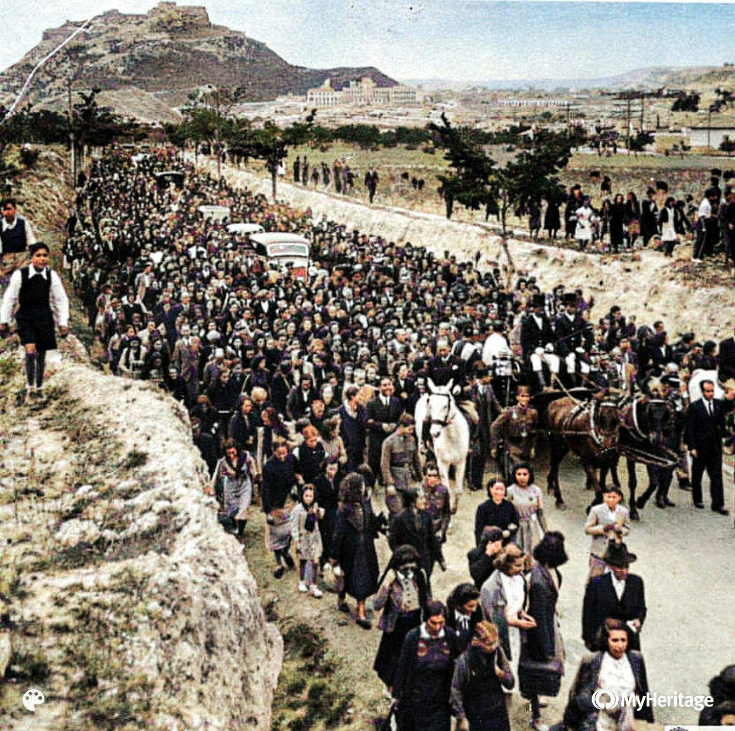 La romeria té una columna principal que ix des de la cocatedral de Sant Nicolau i transita els 7 km que dista a l’església-monestir de “la Verònica”. Fotografia sense data ni autor.