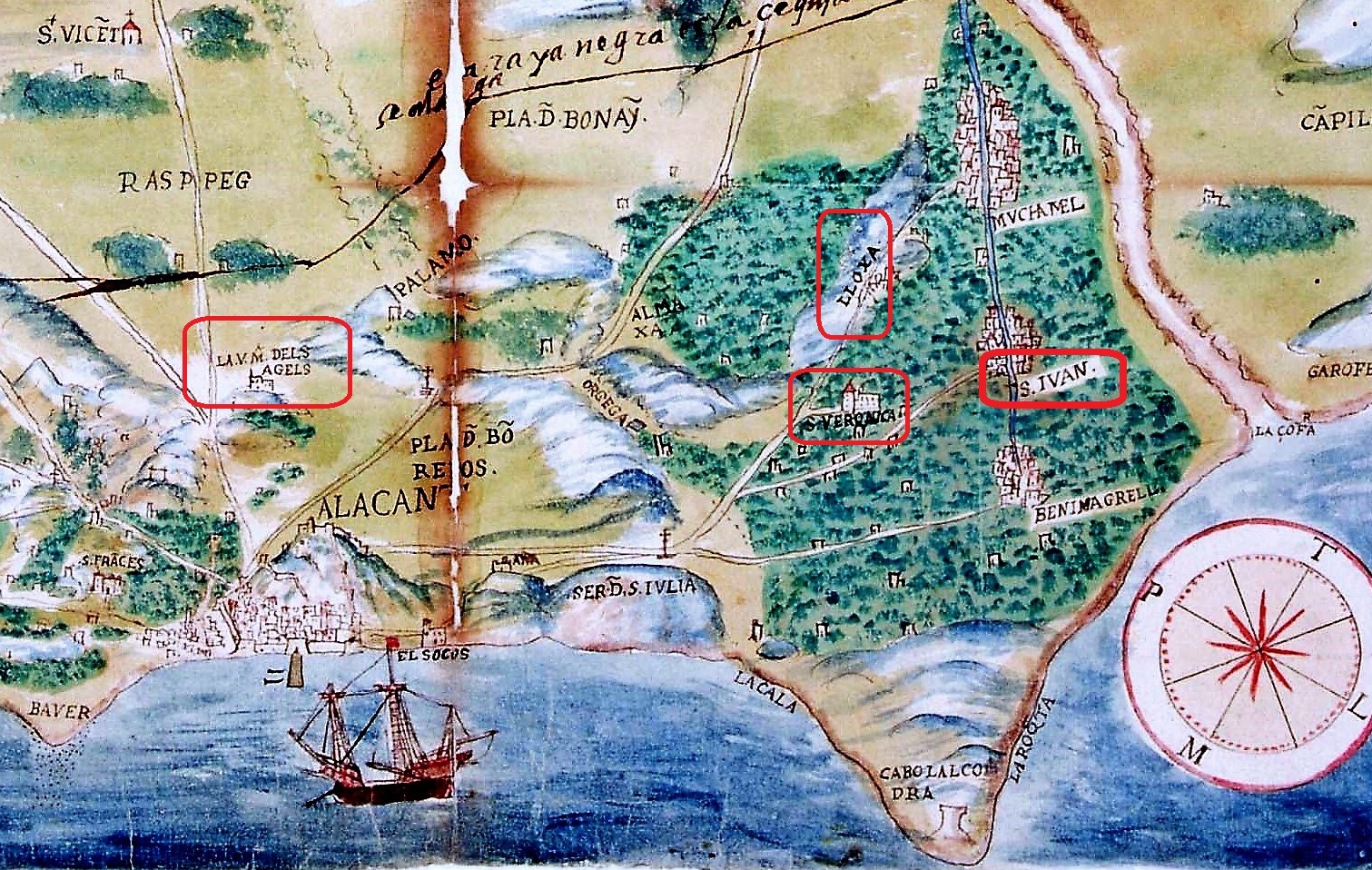 Imatge de portada: Fragment del mapa de l’Arxiu de la Corona d’Aragó del 18 d’octubre de 1585. L’acompanya la llegenda “Lo que es muy berde es huerta de Alicante en la qual están los lugares y monesterio señalados tierra muy fértil pero perdida por falta de agua”. Font: Jorge Payá Sellés