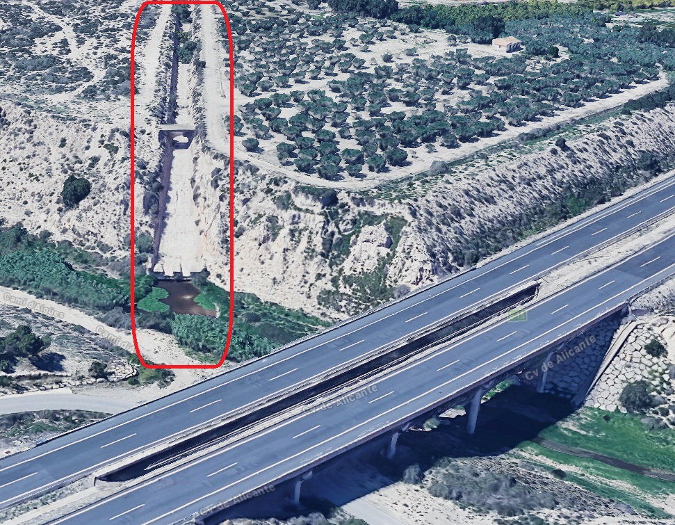 Desviació del barranc Cabrafich, entre Busot i el Campello, cap al Riu Sec (tram final del riu Montnegre). L’obra es va realitzar en resposta a la catastròfica riuada del 2 de novembre de 1934