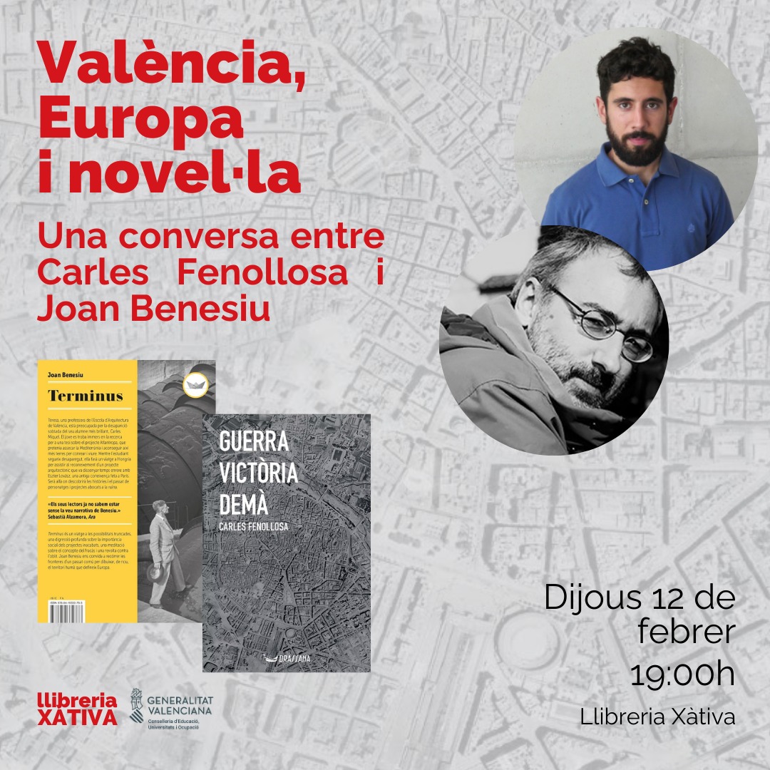 La Llibreria Xàtiva acull este dijous 12 de febrer, a les 19:00 hores, la presentació conjunta de Guerra, victòria, demà, de Carles Fenollosa, i Terminus, de Joan Benesiu, en una conversa que posarà el focus en la relació entre València, Europa i la novel·la contemporània. L’acte reunirà dos veus destacades de la narrativa valenciana actual que, des de registres i estructures diferents, han situat les seues històries en el marc convuls del segle XX europeu.