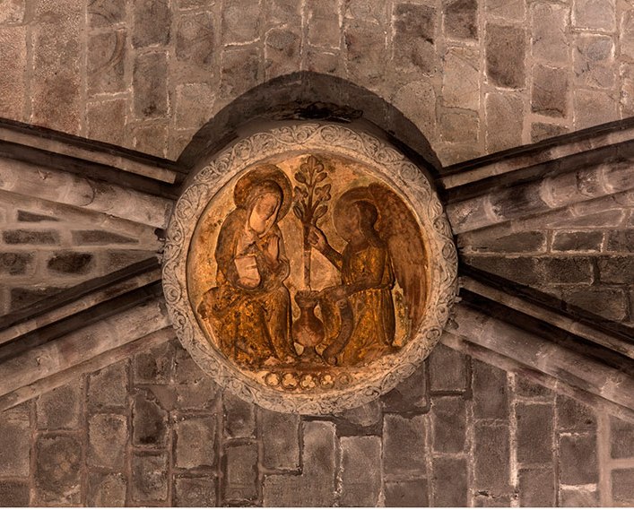 ‘Annunciazione’ (s. XI-XII). Fresc romànic a la Cappella di Castel Appiano, al Tirol del Sud