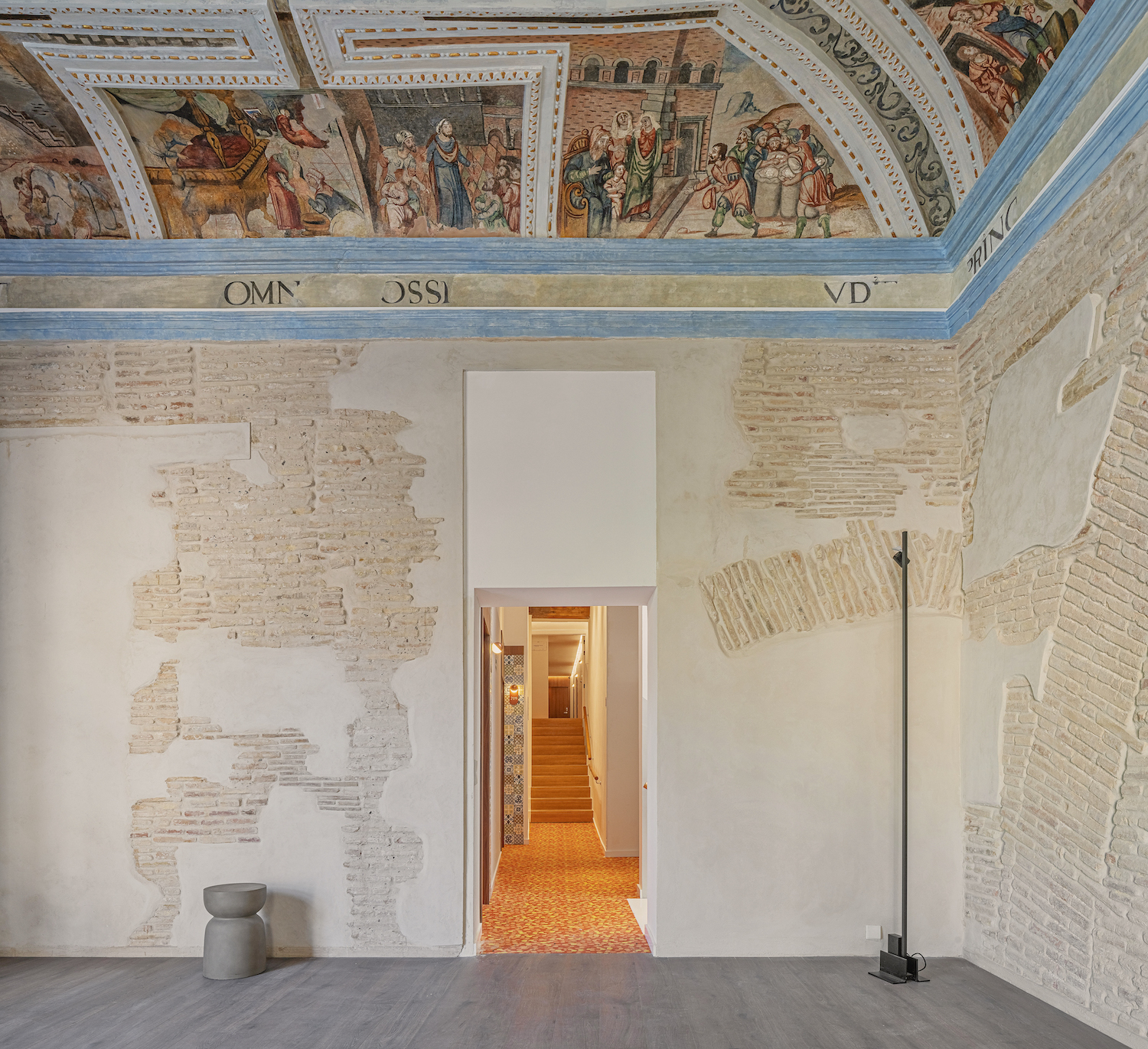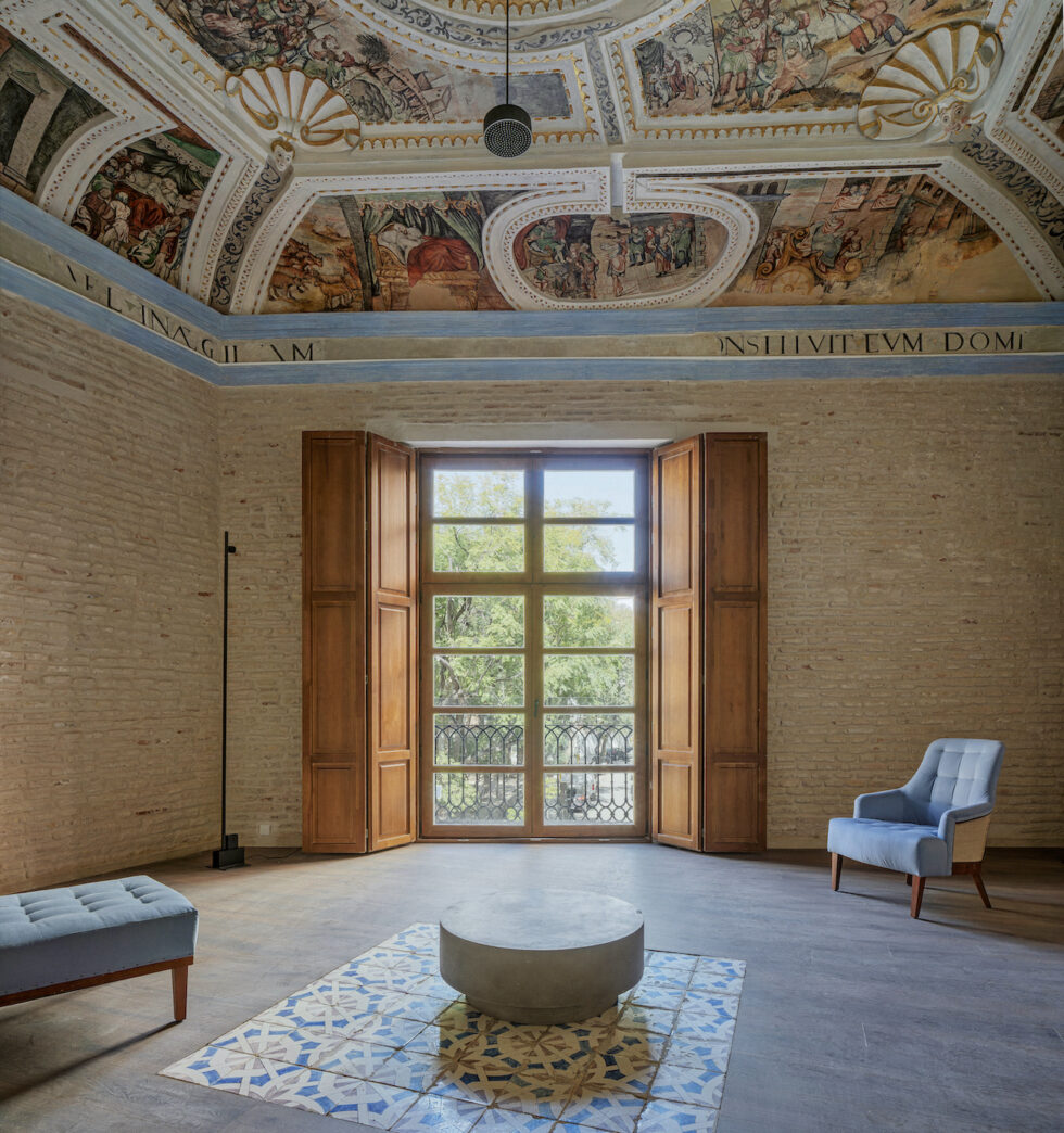 L’edifici, protegit com a Bé d’Interès Cultural, havia quedat abandonat després de dècades d’ús com a discoteca i ara ha estat rehabilitat per la coneguda cadena d’hotels gayfriendly amb una intervenció liderada per l’estudi d’arquitectura Estudio Mars, amb el suport d’experts en restauració i arqueologia, que no només han rehabilitat estructuralment l’espai, sinó que han recuperat elements patrimonials fins ara desconeguts. En este sentit, el descobriment més inesperat es va produir en la sala noble de la casa, on, davall de tres capes superposades de pintura, es trobava un teixinat decorat amb pintures murals originals del segle XVI, cobertes al llarg dels segles per intervencions successives. Les primeres proves realitzades pel restaurador Raúl Chulià, a petició dels arquitectes, van revelar primer una decoració de tipus florentí, després una capa barroca, i finalment la pintura més antiga i original: una composició figurativa de gran qualitat i riquesa iconogràfica.