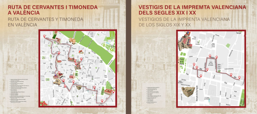 El programa inclou també dos rutes culturals que traslladen el relat fora de les sales del Palau de Cervelló. D’una banda, una ruta per la València de Cervantes, guiada per Begoña Valero, i de l’altra, un itinerari pels vestigis de les impremtes dels segles XIX i XX, conduït per Enrique Fink. Finalment, uns tallers d’impressió completen l’oferta amb sessions pràctiques en què el públic pot experimentar de primera mà el procés d’impressió tradicional, tant amb la rèplica de la impremta de Gutenberg com amb la premsa Minerva.