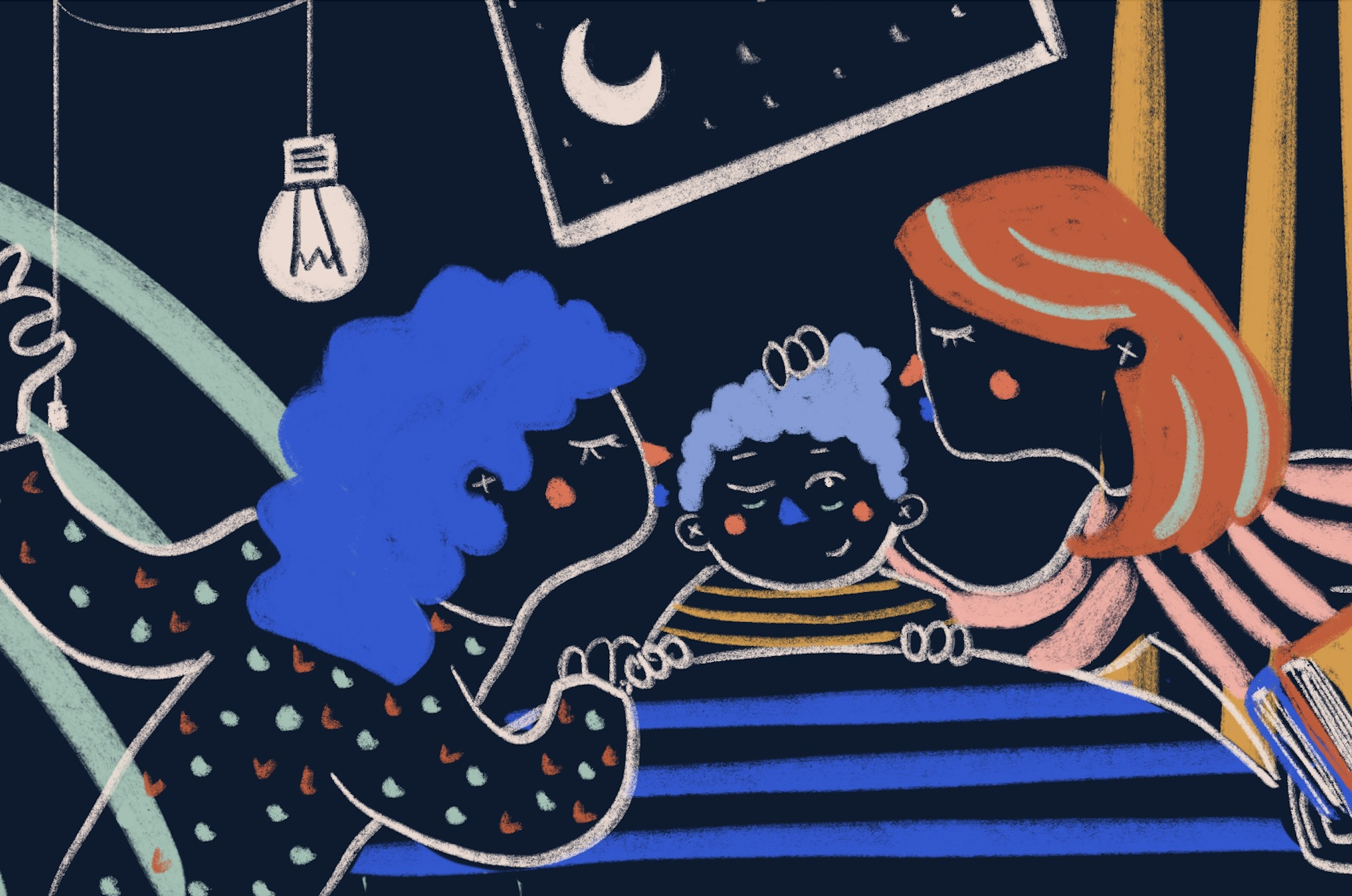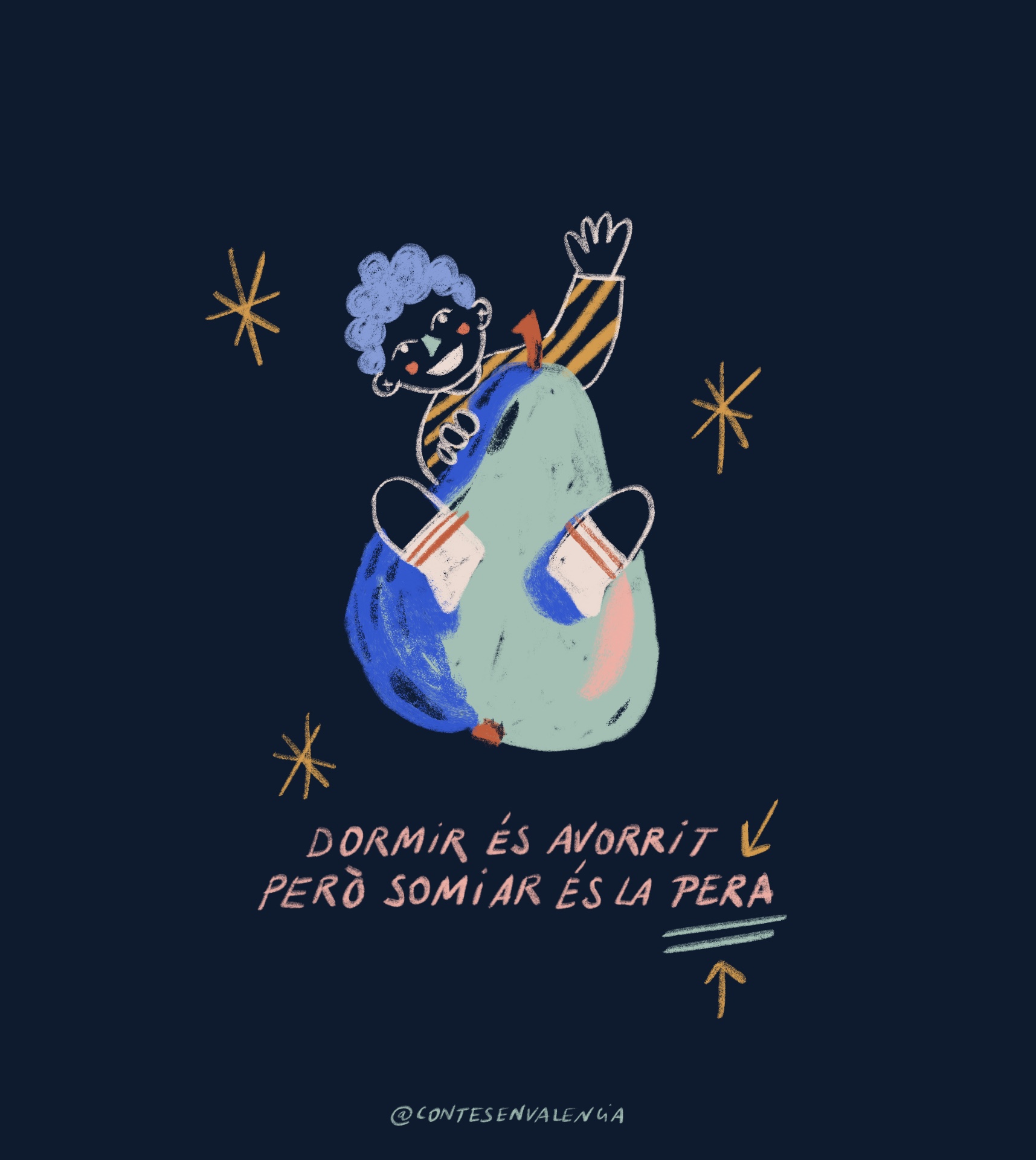 Martí tenia 5 anys i no volia dormir mai. Pensava que mentre dormia s’estava perdent coses al·lucinants. Així que, quan es feia de nit, les seues mares es desesperaven per tal que se n’anara al llit, però ell corria amunt i avall i s’escapava. Demanava un conte, i un altre conte i 5 minuts més, i 10 i 15… i al final, després de molta estona de guerra, la seua energia s’esgotava i se li tancaven els ulls.