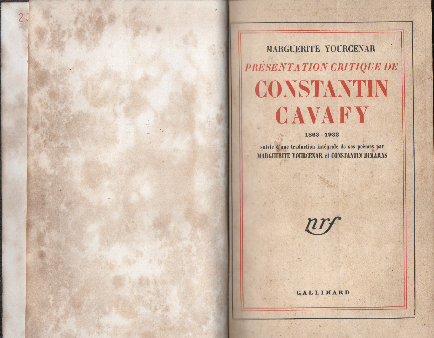 Res tornarà a ser igual en l’obra de Marguerite Yourcenar després d’eixe descobriment. Junt al seu iniciador Dimaras, mamprendran la primera traducció de la poesia kavafiana al francés. Primer en diferents lliuraments parcials i variades revistes literàries, i finalment en l’edició definitiva, que haurà d’esperar fins a 1958 per a materialitzar-se. Igual que va fer E.M. Forster en l’àmbit anglés, Yourcenar serà la responsable final de la introducció, l’èxit i la influència del poeta grec en el complex ecosistema literari francés, particularment tancat i refractari a estímuls forans.
